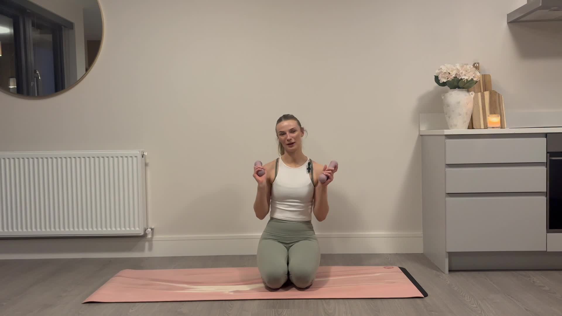 Sculpt and strengthen your abs and shoulders in this dynamic, weight-enhanced Pilates session!